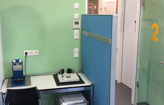 Hier führen wir die Hör- und Sehtests durch (im Zimmer 2)